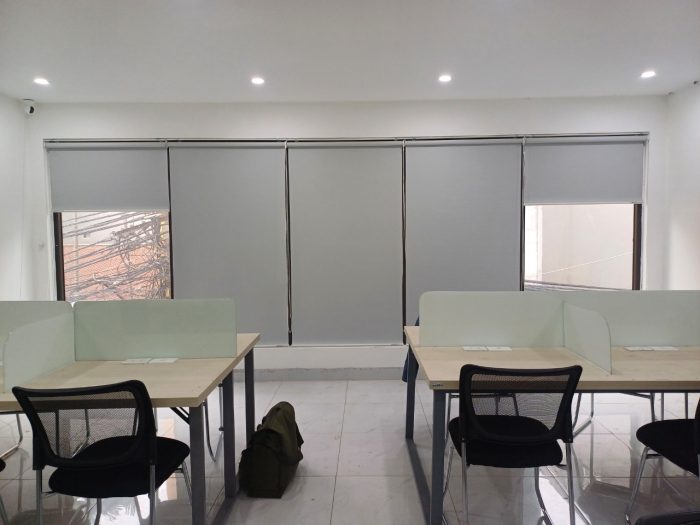 Gợi ý: rèm cuốn nhựa kéo dây — chắn nắng mạnh, dễ vệ sinh, bền.